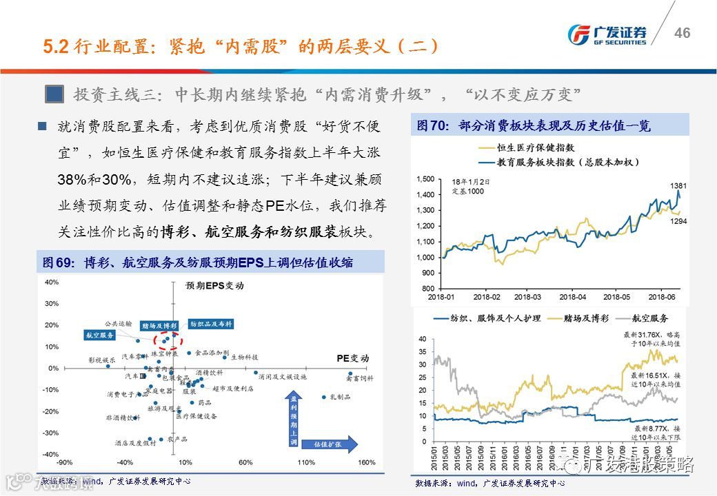 其二为中期视角,继续紧抱“内需消费升级”,“以不变应万变”。考虑估值因素,下半年建议买入博彩、航空服务和纺织服装龙头。另外,港交所改革年,科技股“短空长多”,建议密切关注。
