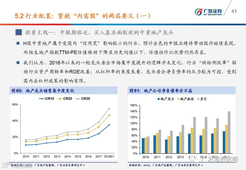 其一为短期视角,中报期临近,买入基本面较优的中资地产龙头,并布局被“紧信用”误伤的工业周期龙头(重卡、工程机械、建材);
