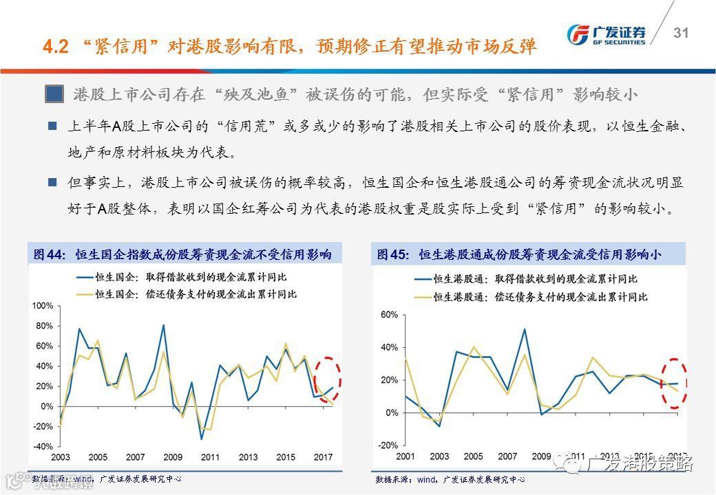 核心逻辑之二:港股被紧信用和去杠杆政策“误伤”,国内预期最悲观的阶段已过,中报基本面支撑市场情绪修复;加上港币贬值压力减轻,互联互通“南冷北热”的局面短期或好转。