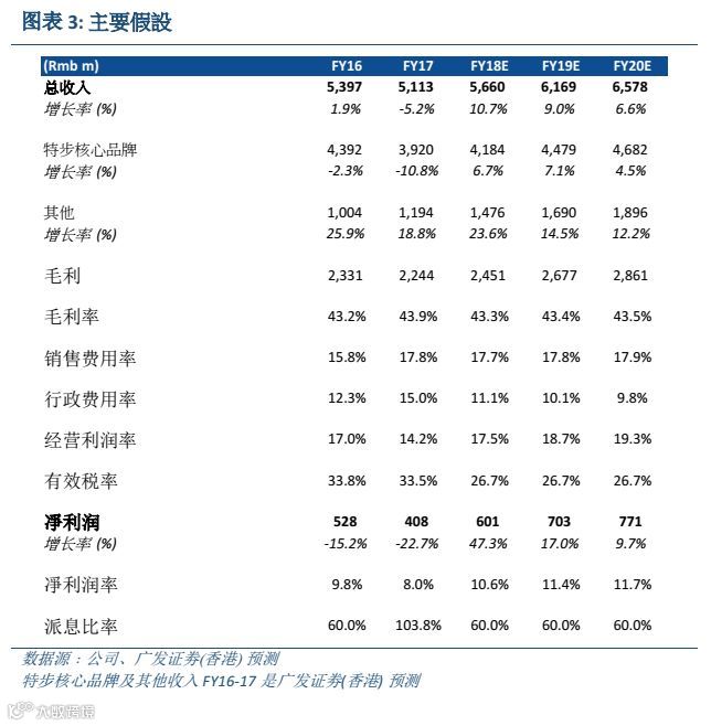 维持买入评级 我们维持公司于2018年业绩反转的看法,维持目标价格于5.00 港元,基于15 倍FY18E P/E,处于历史区间高端。我们认为这一估值合理,因为:1)公司完成为期3 年的转型,包括品牌(从时尚导向转向功能导向)、产品和零售渠道(渠道扁平化和分销商直接营运60%以上的店铺)和应收账款周转天数趋于正常化;2)同行估值已大幅上升,安踏体育(2020 HK,买入)/李宁(2331 HK,持有)FY18 P/E分别为24 倍/27倍。