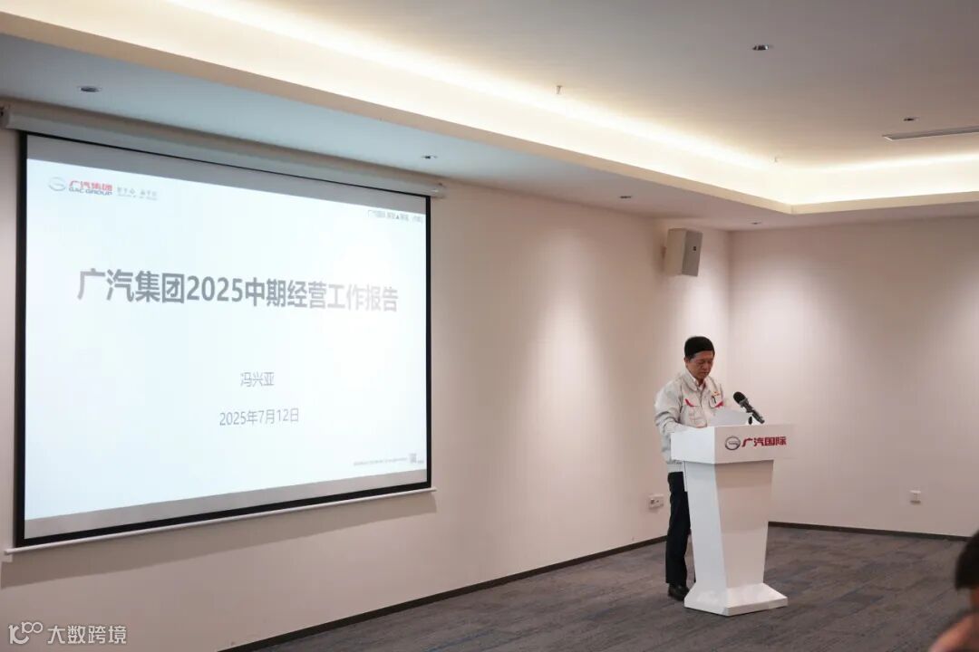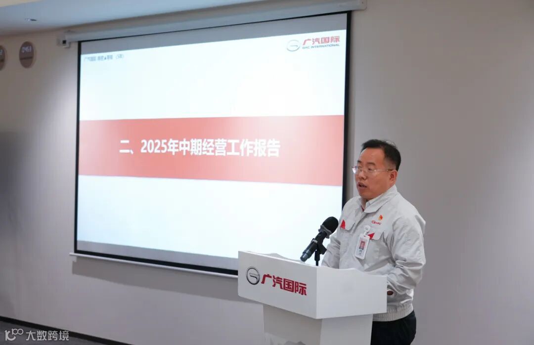 卫海岗代表公司领导班子作2025年中期经营工作报告。报告指出,在复杂多变的全球市场环境下,广汽国际上半年逆势而上,实现国际化战略纵深推进、品牌影响力突破、产品研发提速等多项关键进展,销量增速超行业平均水平。