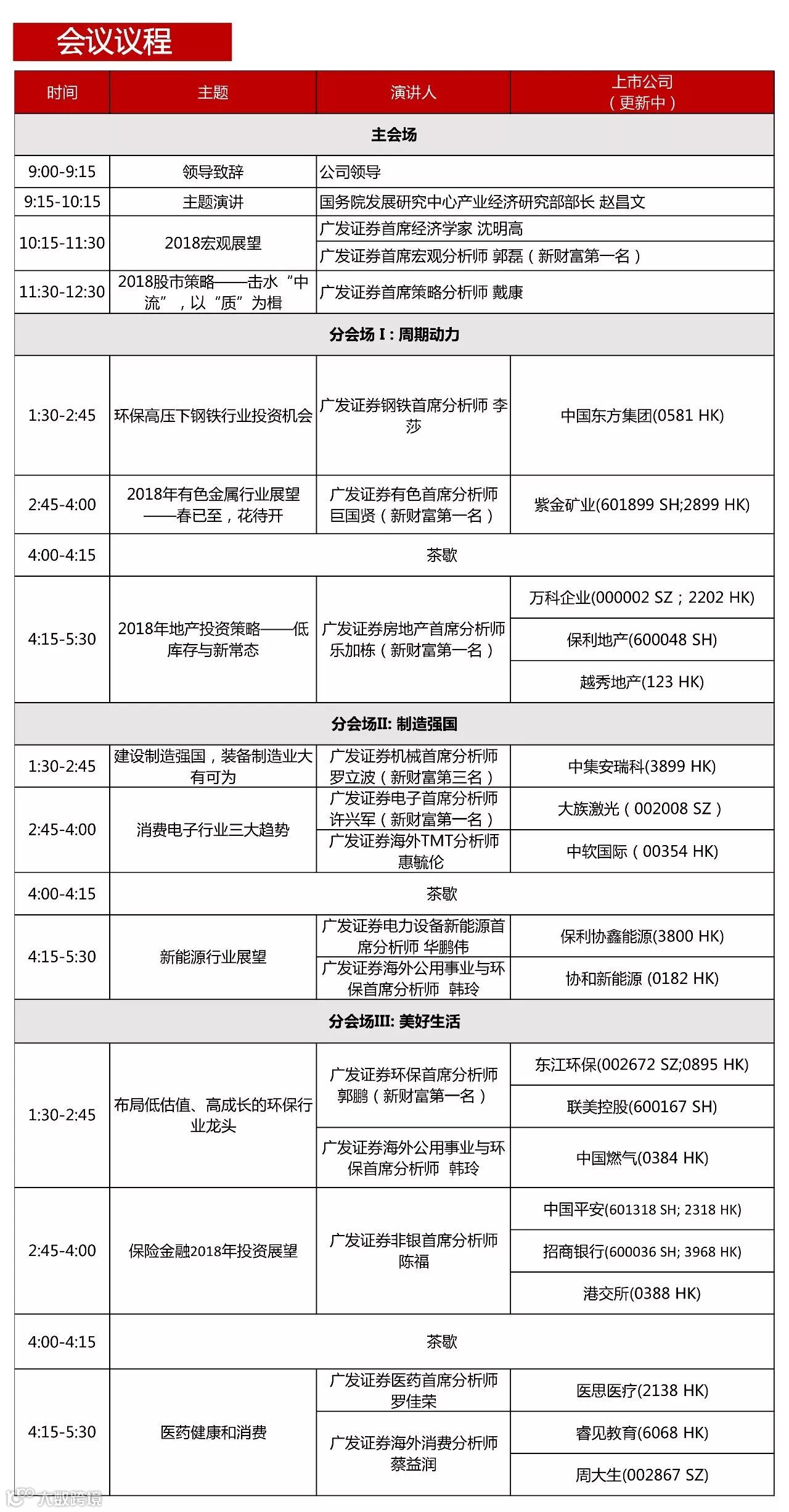 广发证券诚邀各大机构投资者及个人投资者踊跃报名,上午聆听国务院发展研究中心产业经济研究部部长赵昌文和广发证券首席经济学家沈明高的宏观展望,下午三大分会场与众多优秀的分析师及优质上市公司高管零距离沟通,深入了解市场形势及上市公司,精准捕捉未来的投资机会。