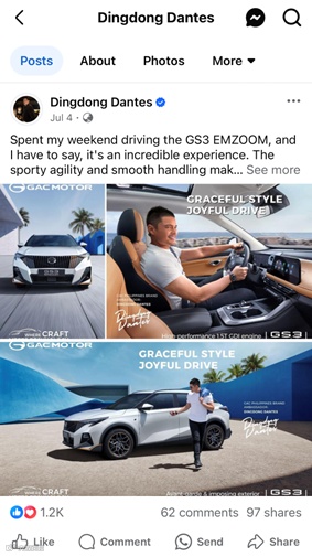 Dingdong Dantes' posts about the GS3 EMZOOM and the All New GS8 are well-received