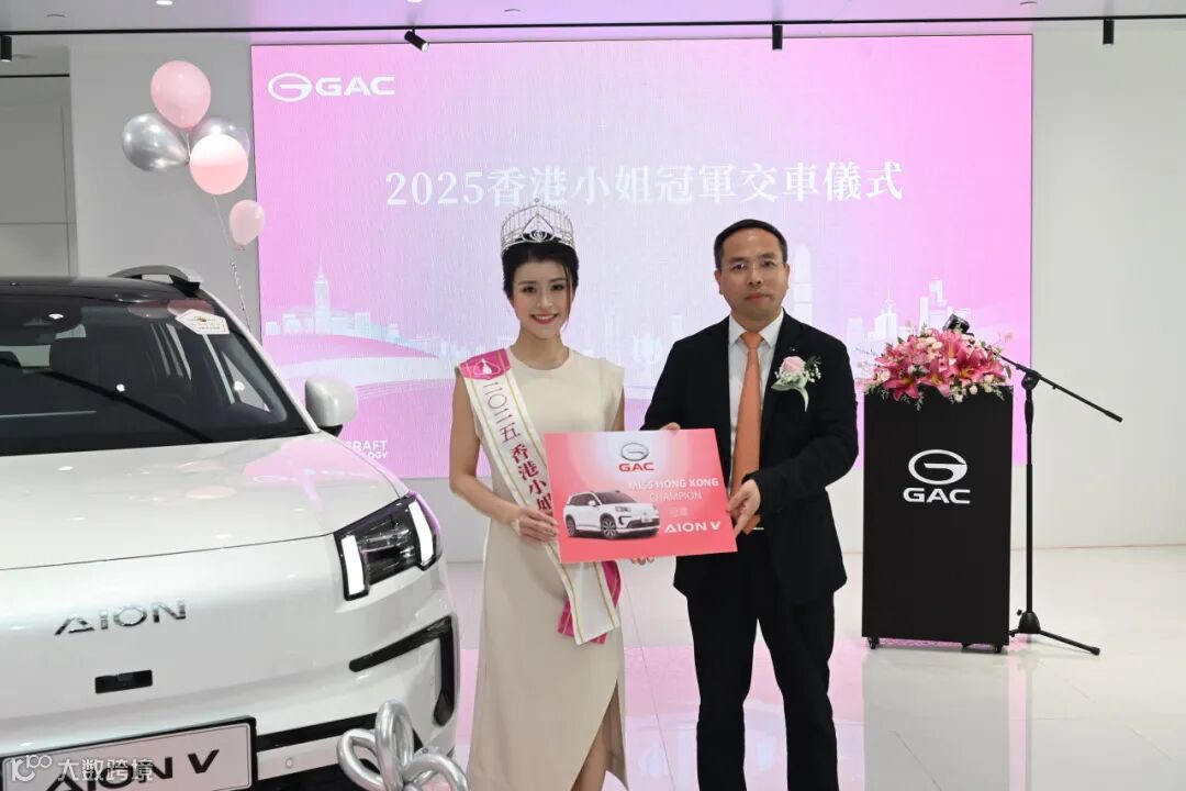 On September 11, GAC INTERNATIONAL held a grand car delivery ceremony at its flagship showroom in Hung Hom, Hong Kong, officially presenting its star electric SUV, the AION V Luxury, to the Miss Hong Kong 2025 Champion, Stacey Chan. The first runner-up, Angela Stanton, the second runner-up, Jane Yuan, and Miss Photogenic and Miss Friendship, Victoria Lee, also attended the event to witness this moment of glory.