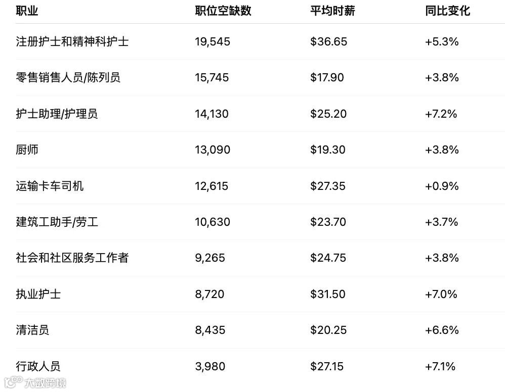 医疗健康 + 物流运输 是绝对核心,其中护士和卡车司机几乎年年位居榜单前列。对于移民申请者来说,这些职业不仅好找工作,还能获得移民加分。