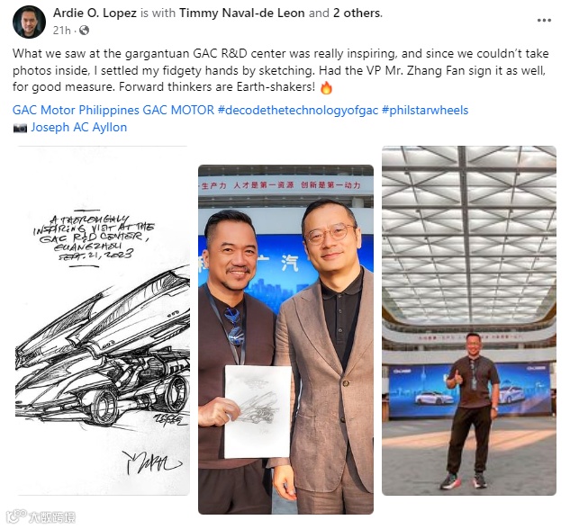 Such a gargantuan GAC R&D Center! Since we couldn’t take photos inside, I settled my fidgety hands by sketching. Had the VP Mr. Zhang Fan sign it as well, for good measure. Forward thinkers are Earth-shakers!