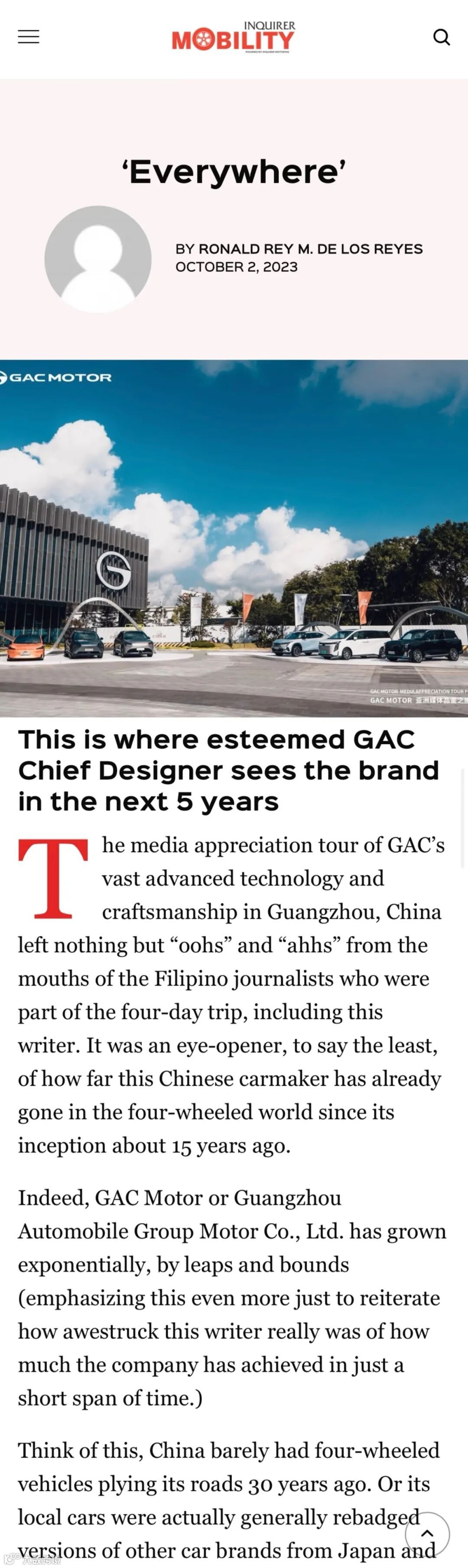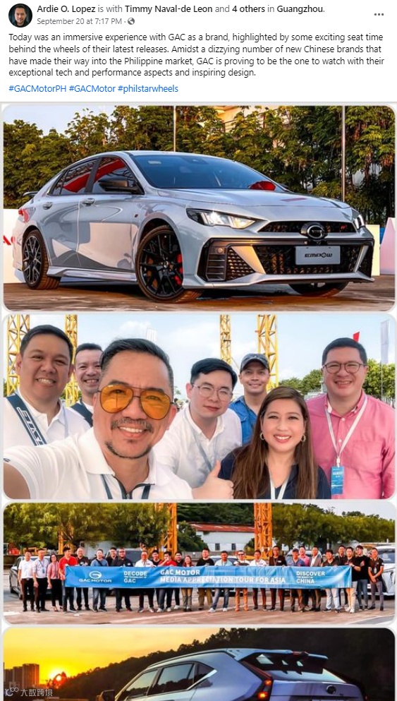在广汽度过了一段激动人心的时光。在众多进入菲律宾市场的中国汽车品牌中,广汽凭借其卓越的技术、性能,证明其是最值得关注的品牌。”