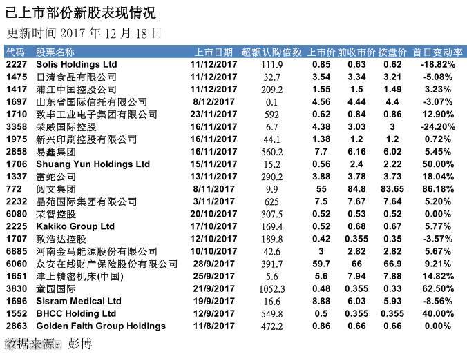 瑞丰动力(02025.HK):中国专业缸体制造商瑞丰动力(02025.HK)宣布在港主板上市计划。计划发售2亿股股份,当中1.8亿股为国际配售,2,000万股为本港公开发售。招股价介乎1.6至1.68元,每手2,000股,入场费3,393.86元。将于12月19日开始至本周五(22日)招股,预计于明年1月4日公布股份配售及发售结果,1月5日挂牌。
