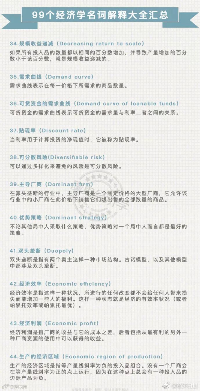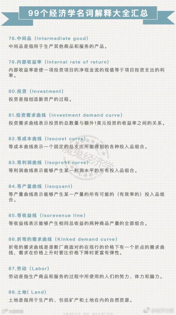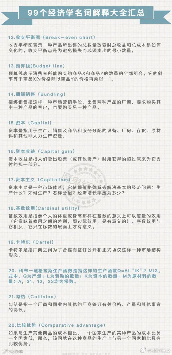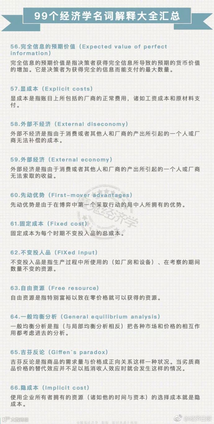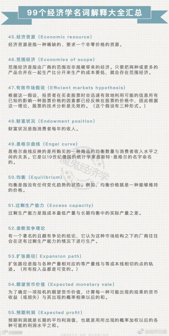 绝对优势、逆向选择、选择成本、需求的弧弹性.....为你总结推荐----99个经济学名词解释大全汇总!你一定用得到!转发学习!