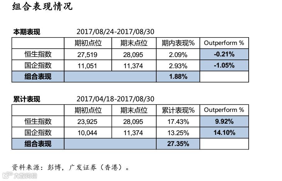 本期组合将中国海外发展(688 HK)调出, 将南方航空(1055 HK)调入。组合仓位不做调整,维持 80%。现金部分继续建议买入 1431 HK 政府债券。