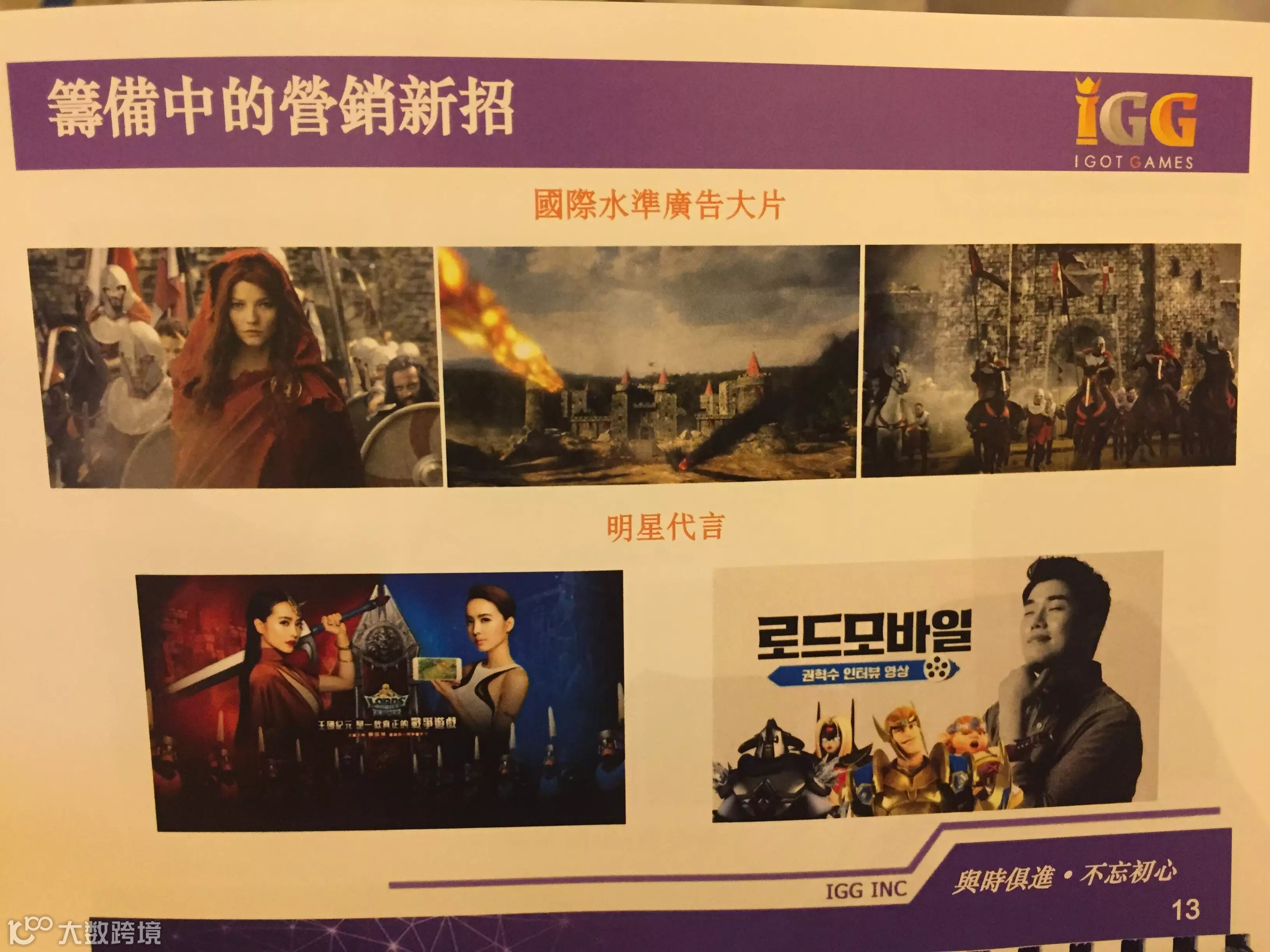IGG市场营销能力有大幅增长,通过国际水准的广告大片以及明星代言进行游戏推广。