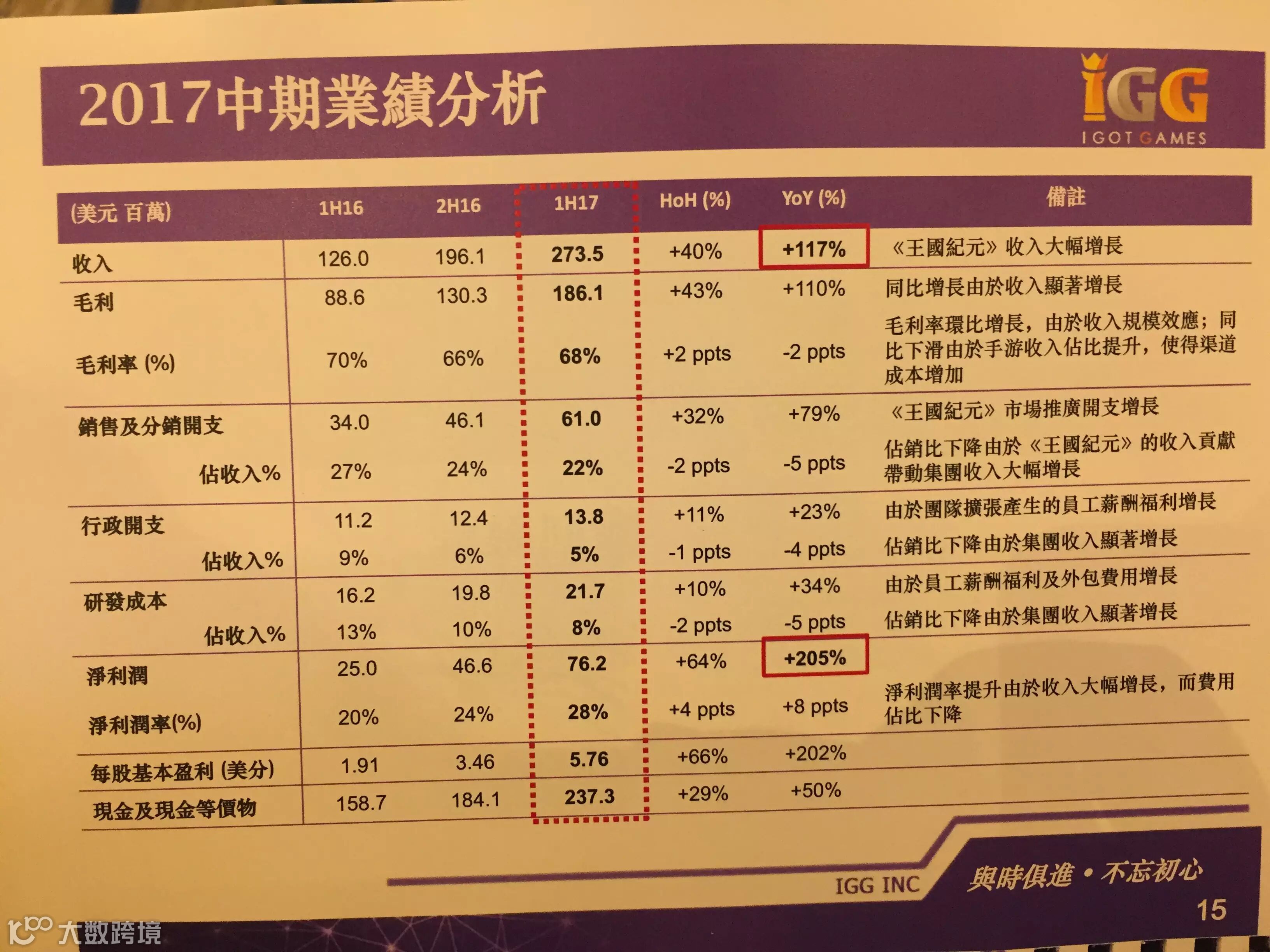 1、收入2.73亿,同比增长117%;净利润2700万,同比增长205%。净利率为28%,未达预期30%主要原因是公司收入增长速度超过利润增长。此外,公司为拓展全球化市场,预提了部分收入作为各地区税务拨备,约400-500万美金。