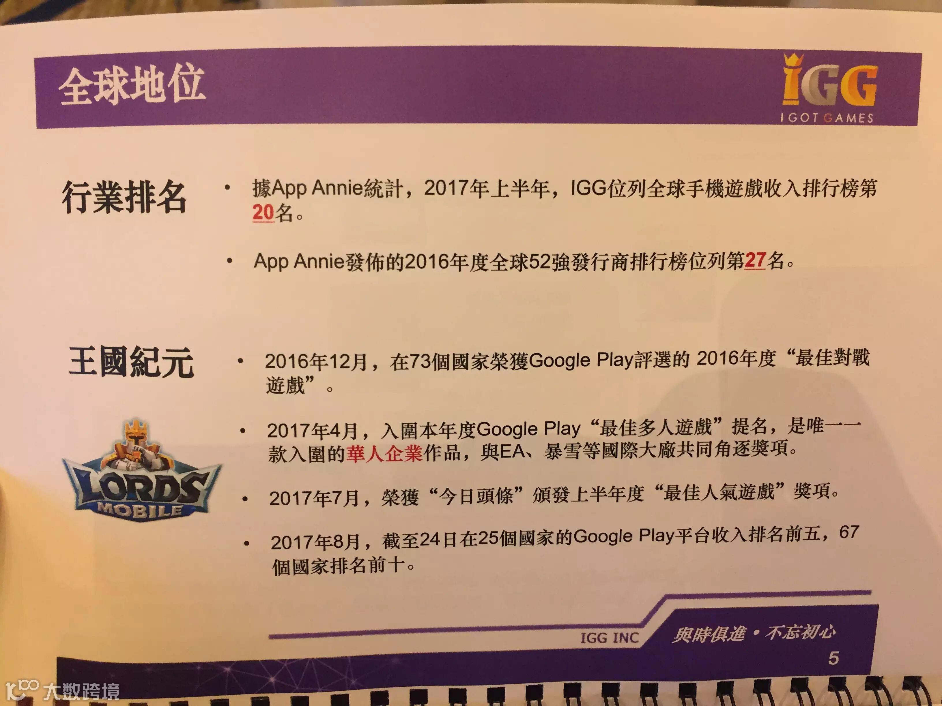 全球地位:2016年IGG在全球手游收入排行榜中排名第27,2017年上半年为20名,未来预计仍将提升。