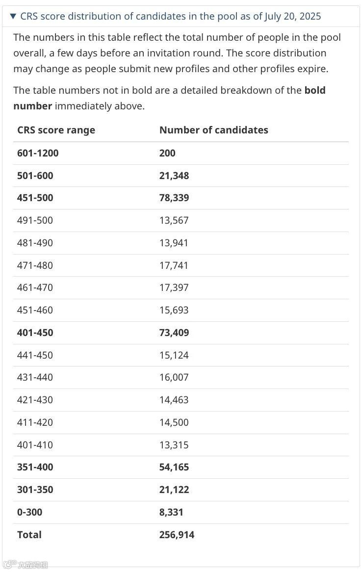 Express Entry候选池人数分布