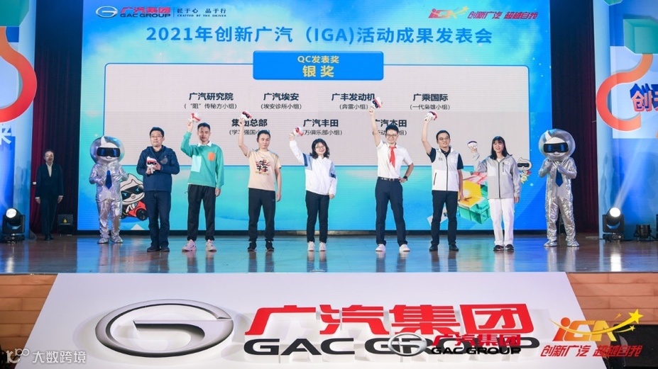 2021年11月6日,广汽集团2021年创新广汽(IGA)活动成果发表会在广汽研究院成功举办。广乘国际在活动中表现亮眼,勇夺“QC发表奖银奖”及“改善提案奖铜奖”两项大奖,展现出广乘国际人创新进取的精神活力。