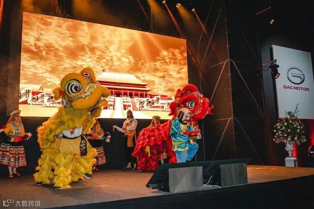 As the "new influence" of Chinese automobiles in the Peruvian market, GAC MOTOR commenced the launch event with a China-Peru art exhibition. The atmosphere was instantly ignited by the giant dragon galloping and the golden lion dancing wildly, embodying the mutual cultural integration of the two countries.
