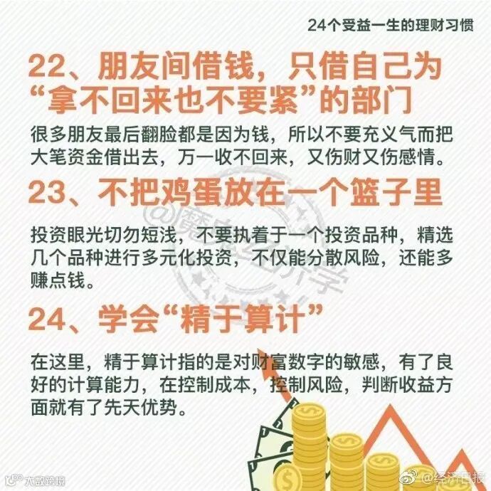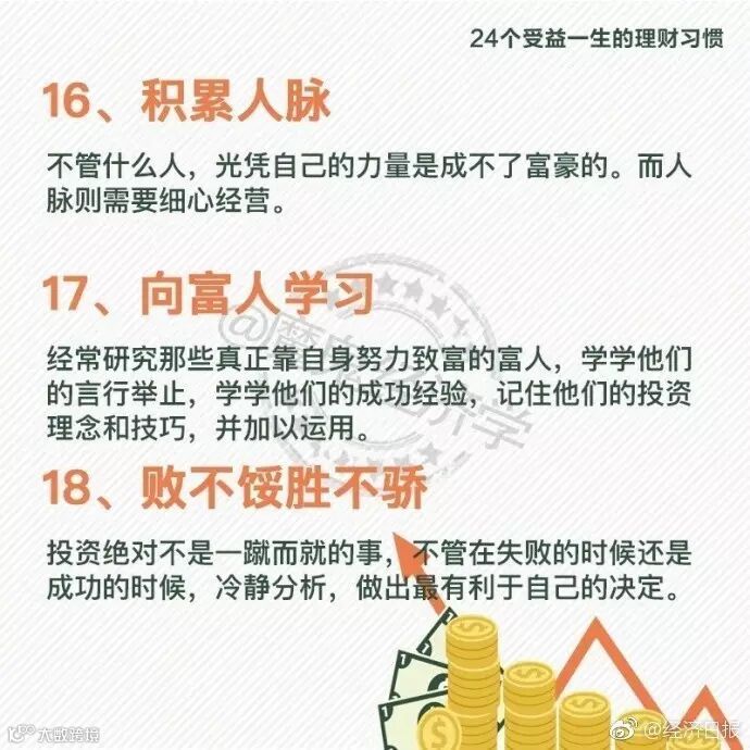 24个受益一生的理财习惯丨人们都说:你不理财,财不理你。想要学会理财,首先要先确立自己的目标,不要把财富完全押在运气上,更不能靠歪门邪道。 在理财之前,如果养成良好的理财习惯,将会受益一生。 24个受益一生的理财习惯↓↓快快戳图学习吧~
