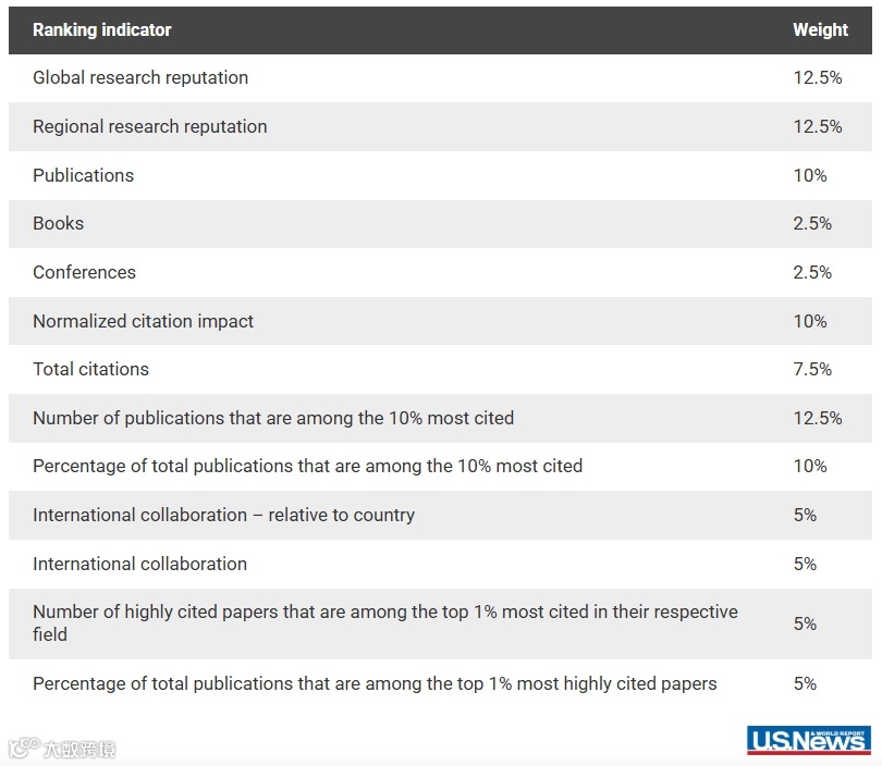 U.S. News 2025 - 2026 年度世界大学排名指标及权重明晰,从研究声誉(全球、区域)、成果产出(出版物、书籍等)、引用影响(规范化引用、高被引占比等 )、国际合作等多维度,以不同占比权重构建评价体系,全面衡量大学综合实力 。