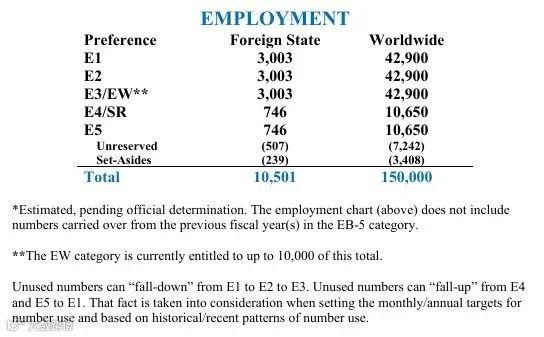 全球EB-1,EB-2(含NIW),EB-3(含EW)分别分到4.29万,EB-4和EB-5分到1.065万。 -