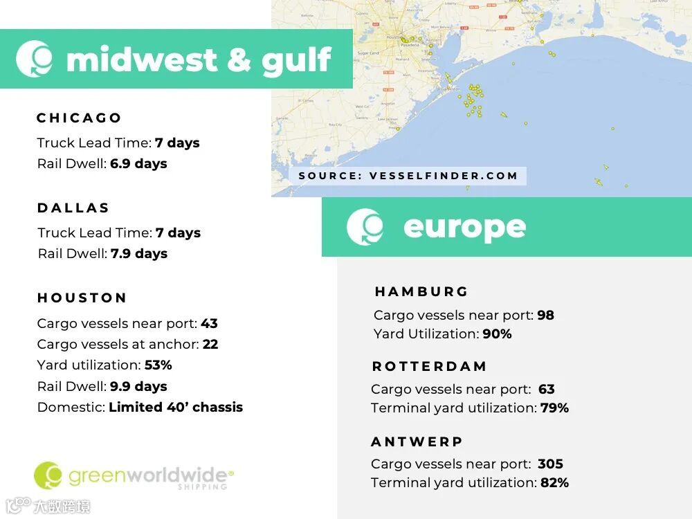 德鲁里表示,随着中国工厂在农历新年期间因假期关闭,预计生产水平和中国出口将下降。这为欧洲和北美的主要港口和码头提供了短暂的喘息机会,以便恢复和清理部分积压货物。然而,这将仅是暂时缓解目前供应链问题。在进口货物从码头到最终目的地的运输效率、以及将空箱迅速回调到最需要的地方恢复平衡之前,压力将一直存在。
