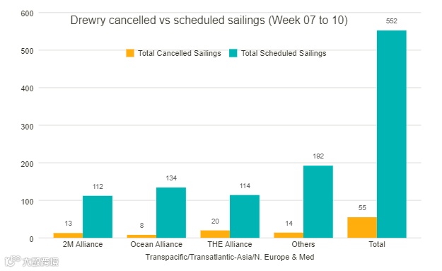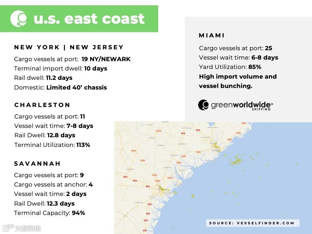 根据最新全球货柜轮的船班准班率统计,去年12月准班率仅32%,低于去年均值35.8%,创下新低纪录,全年船舶的平均延误时间为6.86天;1月数字虽未公布,但抢柜问题加剧,以目前北美船班排队进港情况恐怕不妙。