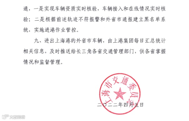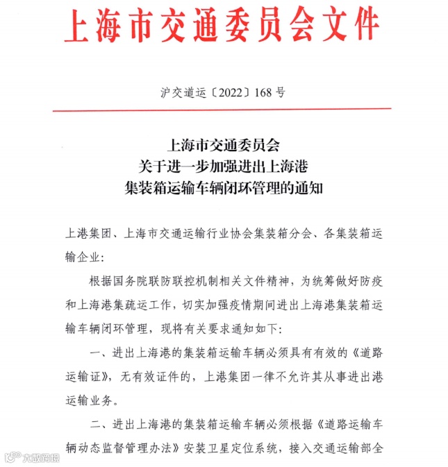 附:关于进一步加强进出上海港集装箱运输车辆闭环管理的通知
