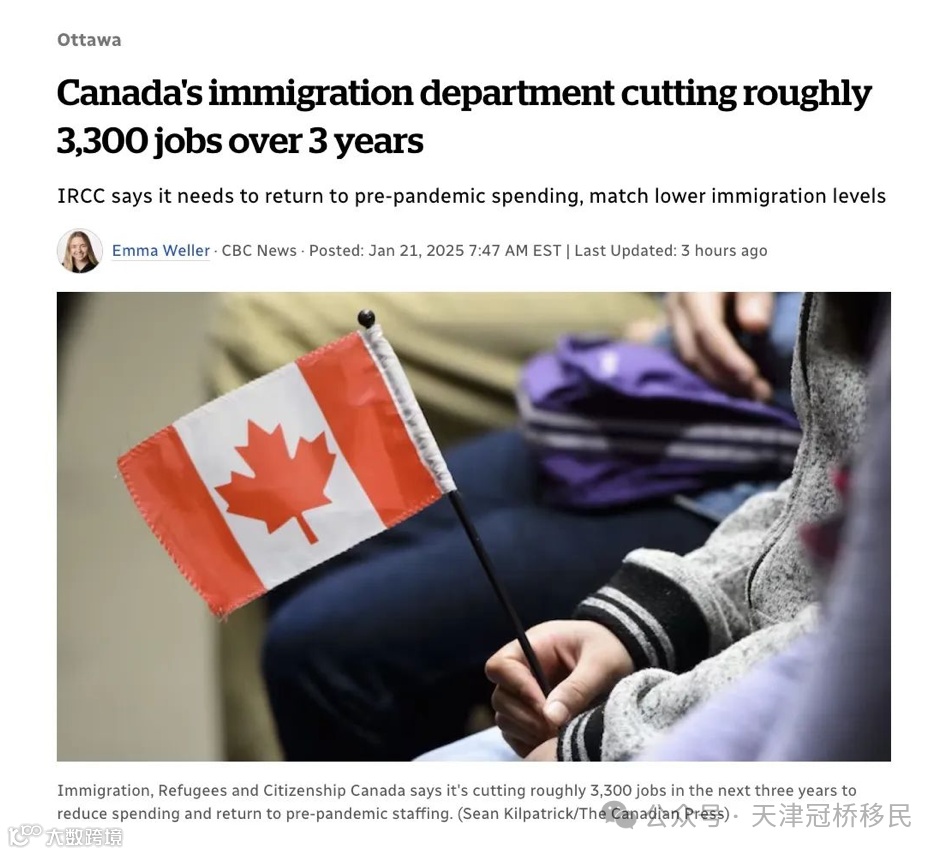 近日,加拿大移民局(IRCC)宣布,计划在未来三年内裁员约3,300人,约占该部门总员工数的四分之一。