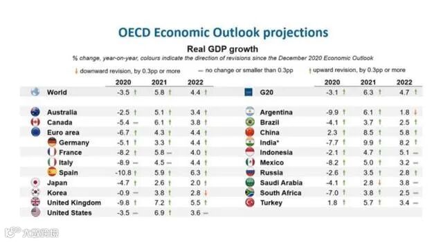 OECD预测,2021年,美国GDP增速或为6.9%,2022年为3.6%。