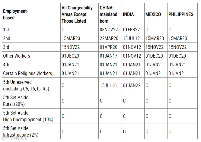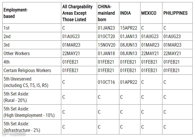 EB-5预留类别(乡村,高失业率地区以及基建项目):无排期。