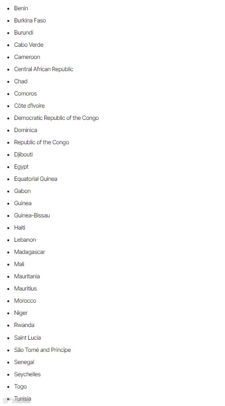 学生还必须是下列符合条件的国家的公民: