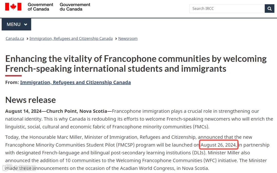 根据加拿大移民部(IRCC)8月14日发布的公告,新的法语少数族裔社区学生移民试点计划(FMCSP)将在2024年8月26日开始实施,同时提高学签批准率,为非洲、中东和美洲的留学生提供更加公平的机会。
