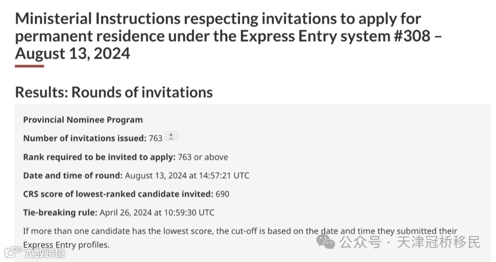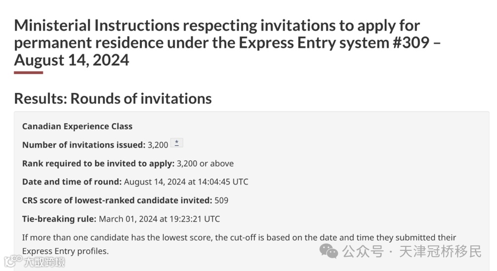 2024年8月14日,联邦EE快速通道第308次抽分,也是2024年IRCC发布第四轮EE-CEC邀请: