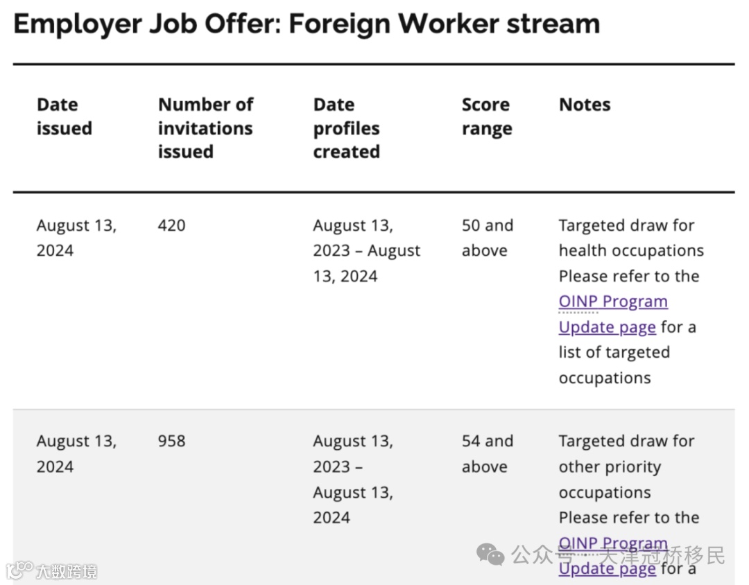 外国工人类别:958个邀请,分数54及以上,针对104个优先职业。 -