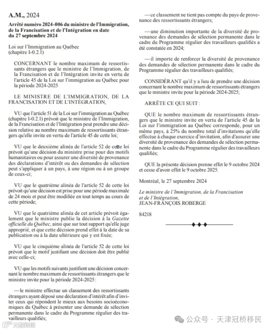 近日,加拿大魁省移民部长 Jean-François Roberge 在《官方公报》上签署了一项部长命令,表示将对普通技术工人计划(PRTQ)下的邀请程序进行调整。