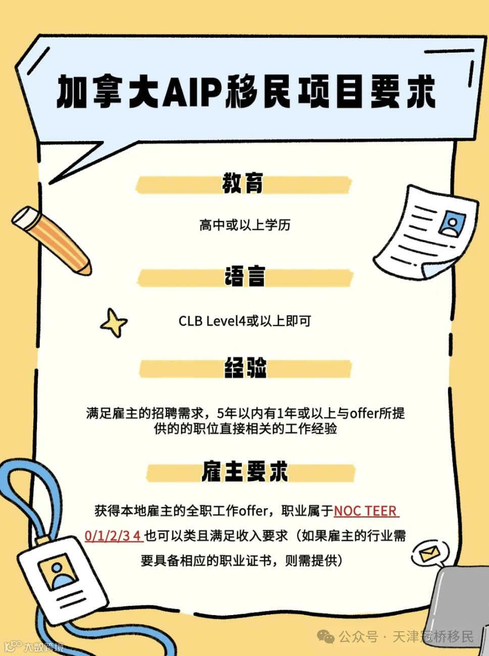 4)雇主:获得本地雇主的全职工作offer,职业属于NOC TEER 0/1/2/3 4 且满足收入要求(如果雇主的行业需要具备相应的职业证书,则需提供。)