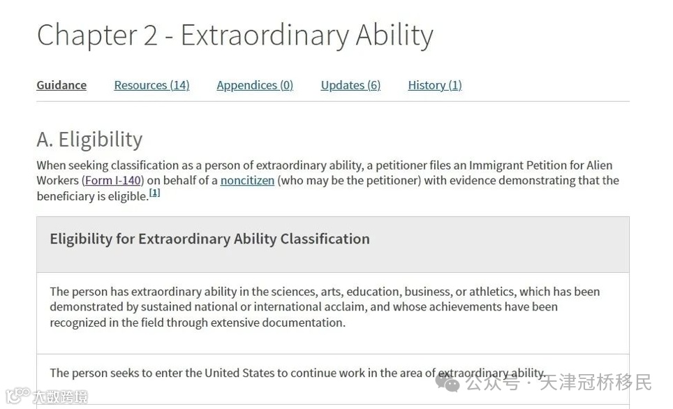 移民审案官依据哪些标准来评估申请人的已获成就?根据美国移民局官方发布的EB-1A杰出人才移民政策指导手册,EB-1A类别明确规定了申请人需具备的“资格”门槛:即申请人在科学、艺术、教育、商业或体育领域内,必须拥有已通过广泛文件证明的、持续获得国内或国际赞誉的杰出能力,且其成就已在专业领域内获得广泛认可,享有持续的国内或国际声誉。