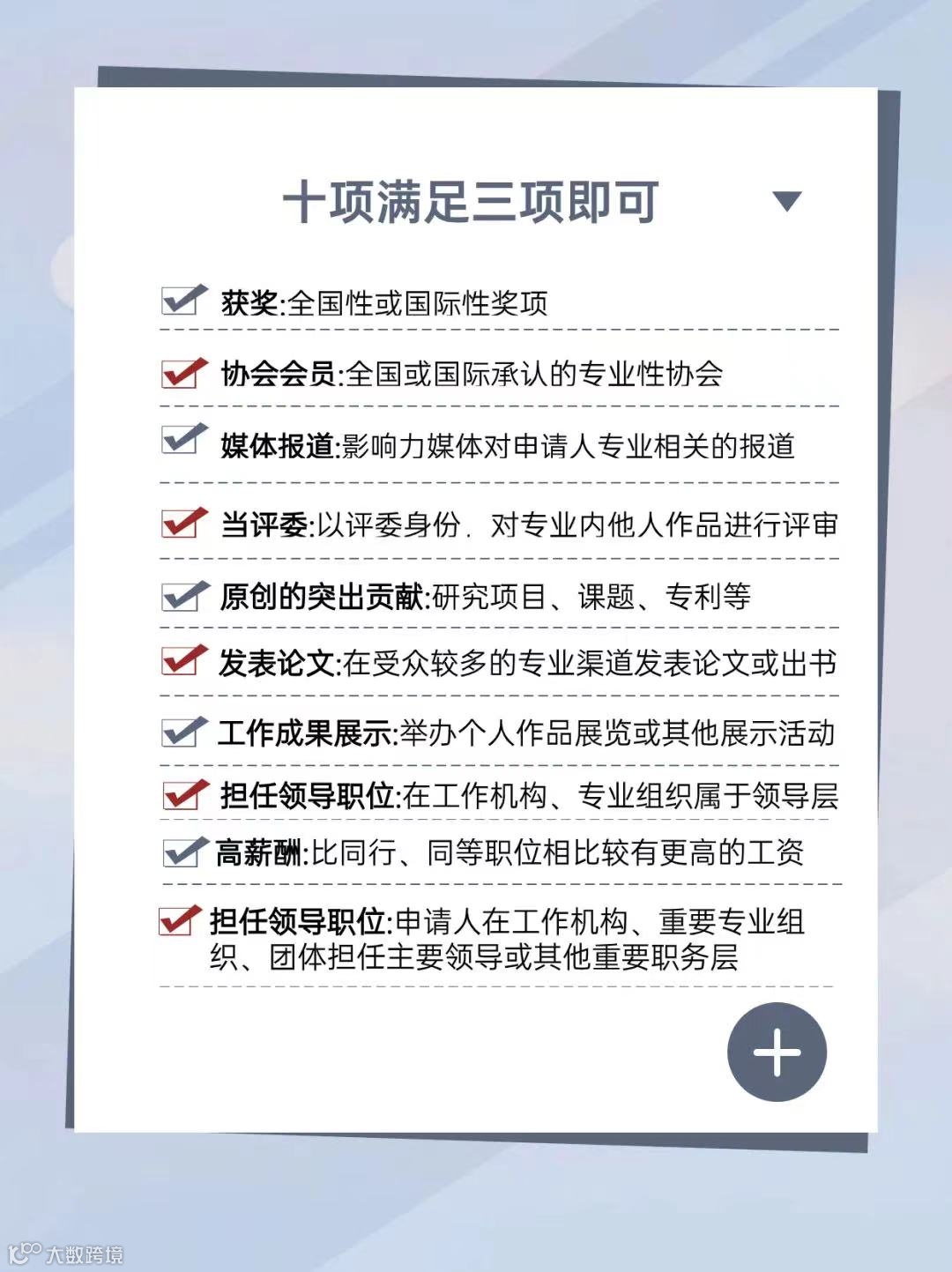 适合在科学、艺术、商业、教育或体育等领域有出色表现的申请人,像企业主,医学家,大学教授,符合条件都能申请。