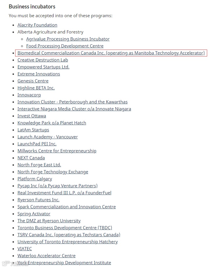 投资要求:申请人必须获得孵化器支持,必须经过加拿大注册公司提交,在加拿大境内开展业务。