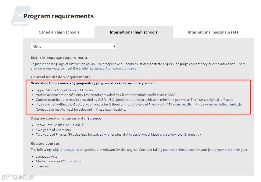 加拿大对于中国教育体制的认可度还是非常高的,对于普高学生来说,加拿大院校认可普高学生的会考及高考成绩。接下来我们看一下加拿大知名大学对于我们中国普高学生的申请要求: