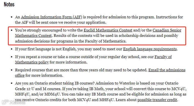 滑铁卢大学强烈要求推荐欧几里数学竞赛或者数学竞赛。