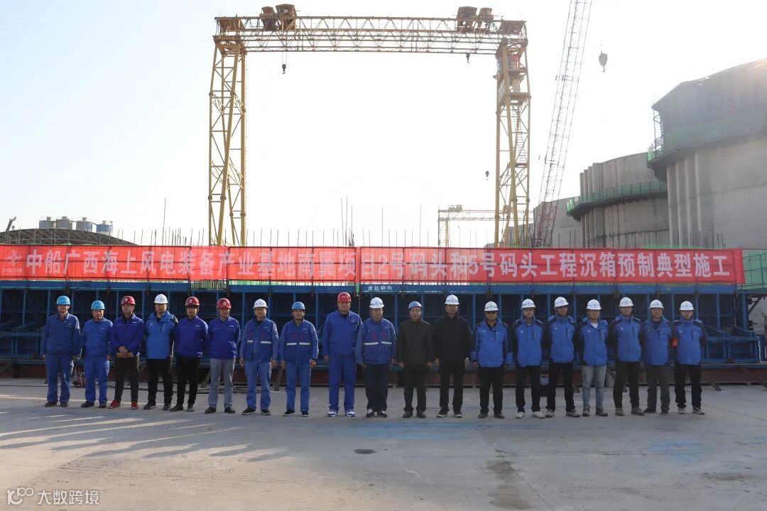 中交第四航务工程局有限公司是负责中船广西海上风电产业基地南翼项目2#、5#码头建设项目的施工单位。该单位将为2#、5#码头制作37个沉箱。其中2#码头20个,5#码头17个。