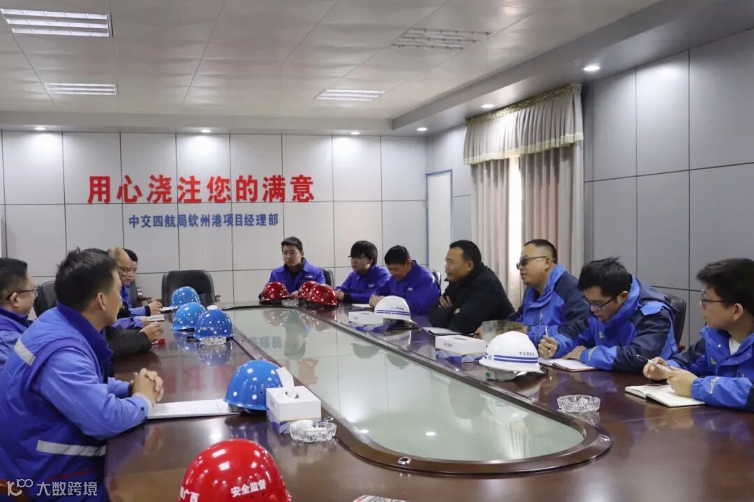 1月12日上午,中国船舶集团广西公司副总经理谈卫一行到中交第四航务工程局有限公司钦州港项目部,就中船广西海上风电装备产业基地南翼项目2#、5#码头工程第一个沉箱混泥土浇筑施工情况进行检查,并召开座谈会。