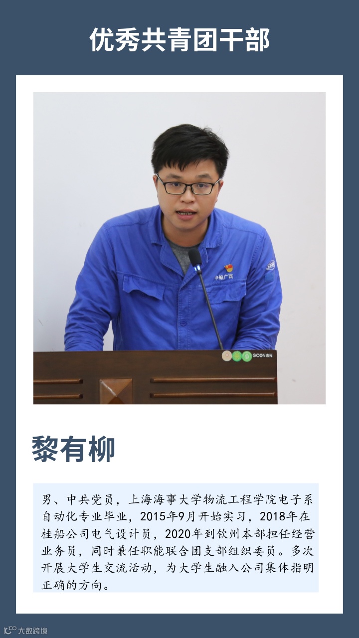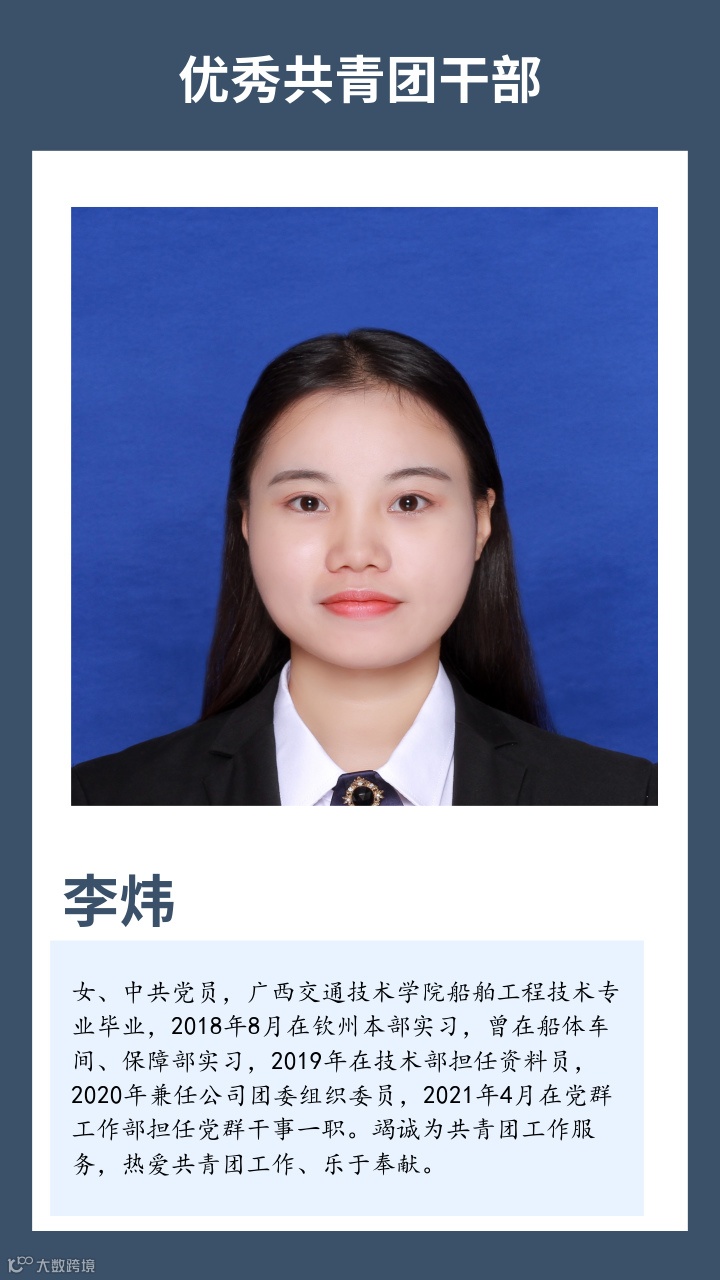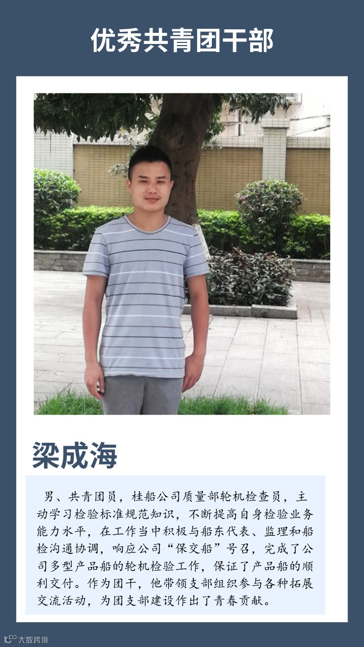 希望受表彰的团干部珍惜荣誉,戒骄戒躁,再接再厉,再创佳绩。公司广大团员青年、各级团干部要以受表彰的先进团干部为榜样,立足本职,扎实工作,争当“有理想、有本领、有担当的新时代中船广西青年”,为公司推动深化改革、完成年度目标任务贡献青春力量。