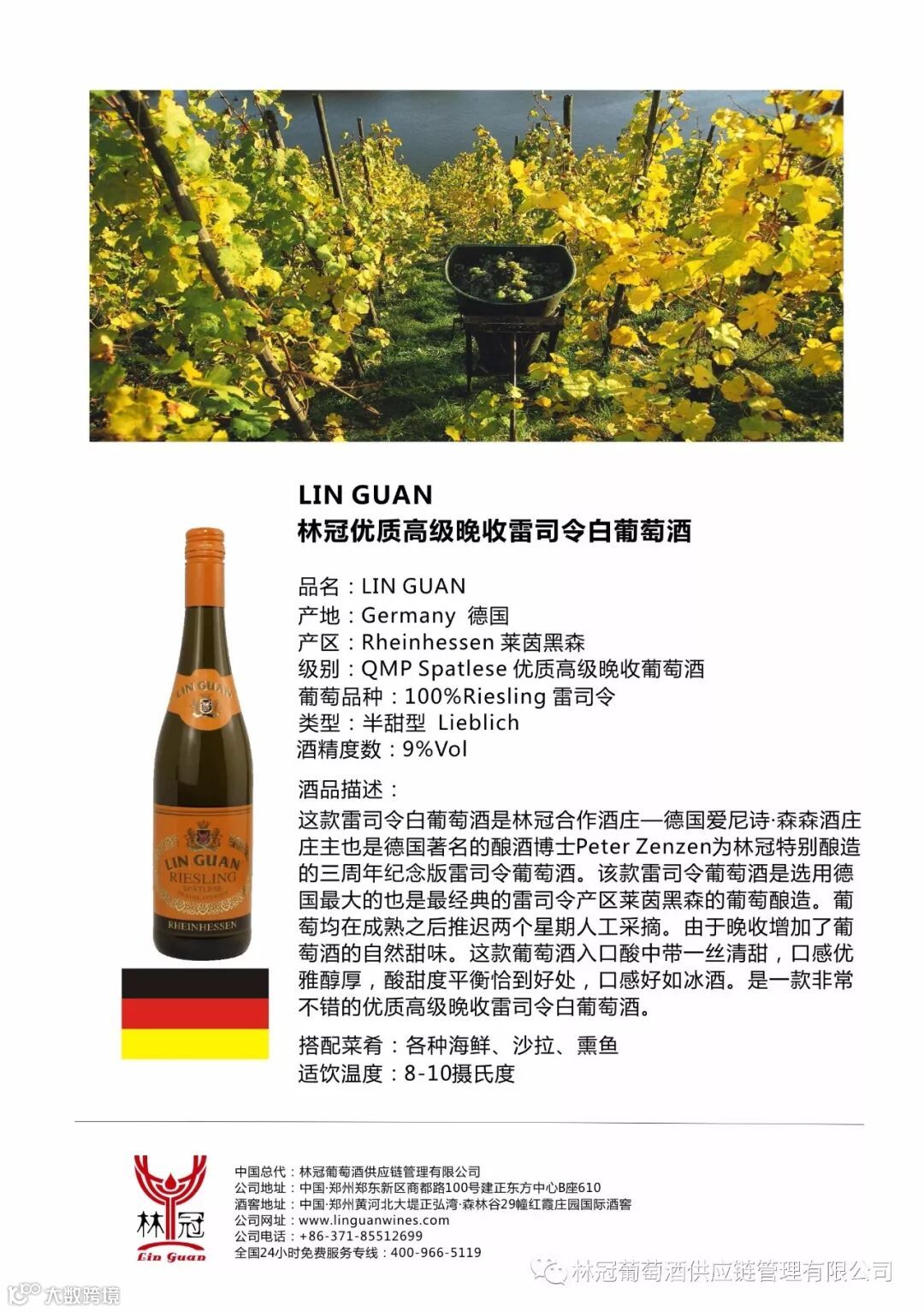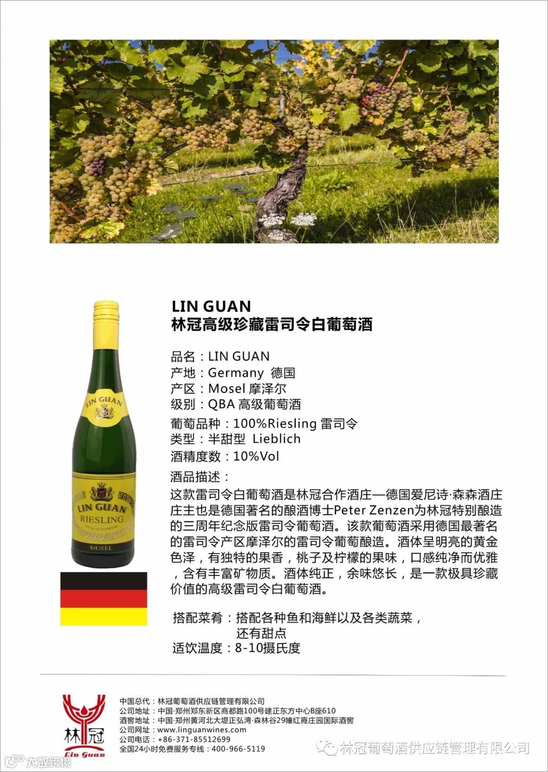 林冠德国合作酒庄德国爱尼诗--森森酒庄庄主也是德国著名酿酒大师Peter Zenzen博士亲自用德国也是世界上最高贵的白葡萄酒品种雷司令为林冠特别酿造两款三周年特别纪念葡萄美酒。一款珍藏雷司令一款晚收雷司令。
