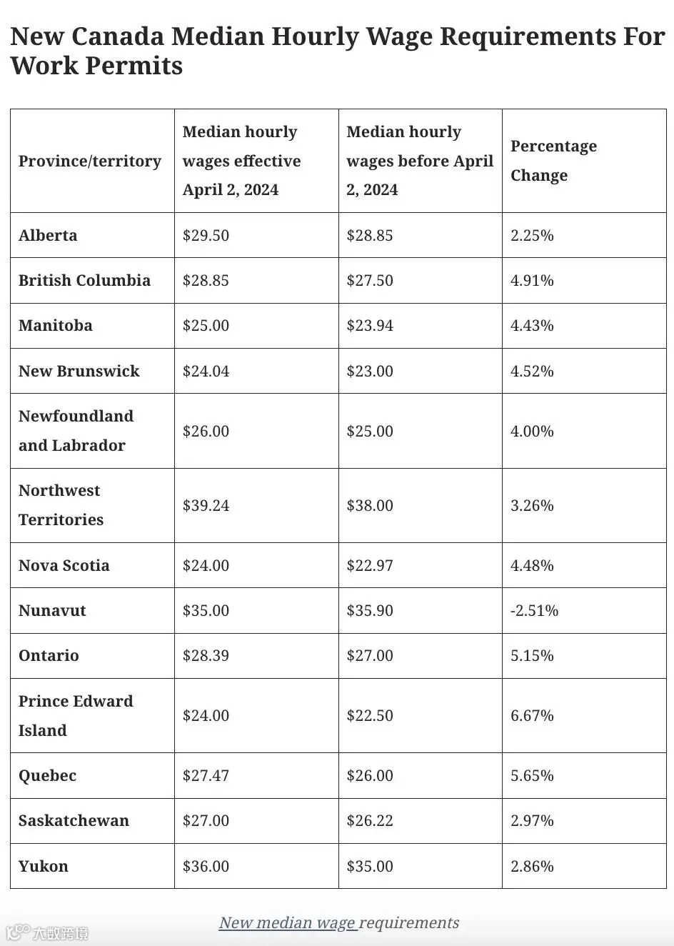 自2024年11月8日起,通过高薪流进入加拿大的工人的起薪,必须要比所在省现行中位小时工资高20%以上。以往雇主申请高薪LMIA时,提供的薪资水平只需不低于所在省的中位工资。