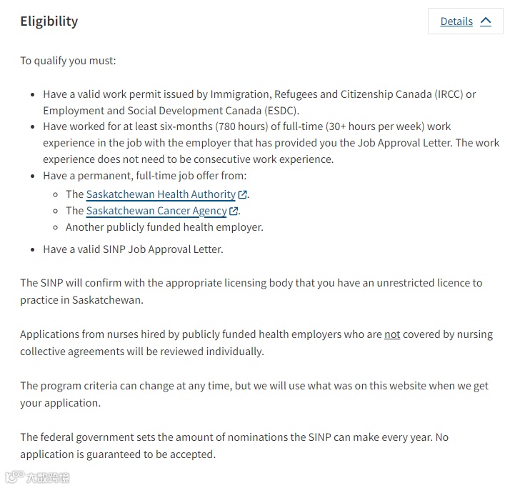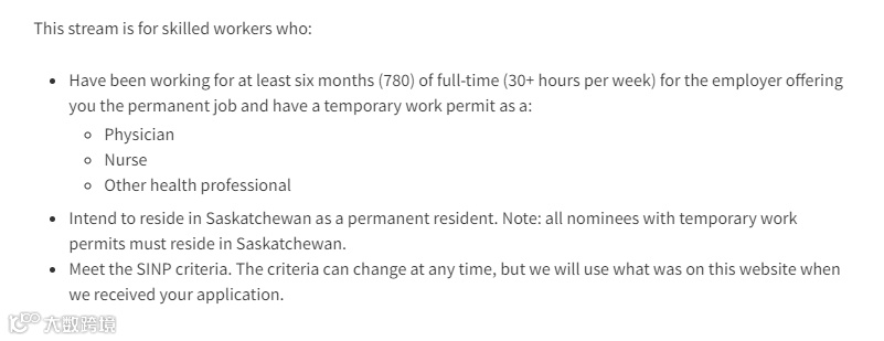 为提供offer的萨省雇主从事被批准的健康工作至少6个月,且与offer为同一工作岗位。