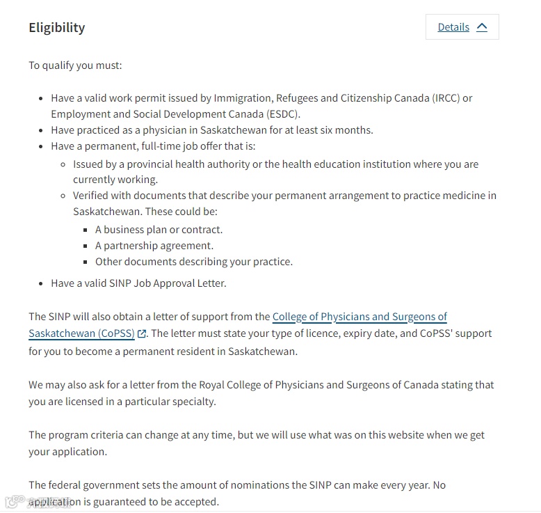 此外,SINP还会要求萨省外科医师学院CoPSS出具支持信,信中必须说明申请人的执照类型、有效期以及支持申请人成为萨省的永久居民。并且可能还会要求加拿大皇家外科医师学院Royal College ofPhysicians and Surgeons出具信函,证明申请人获得了某一专业的执业资格。