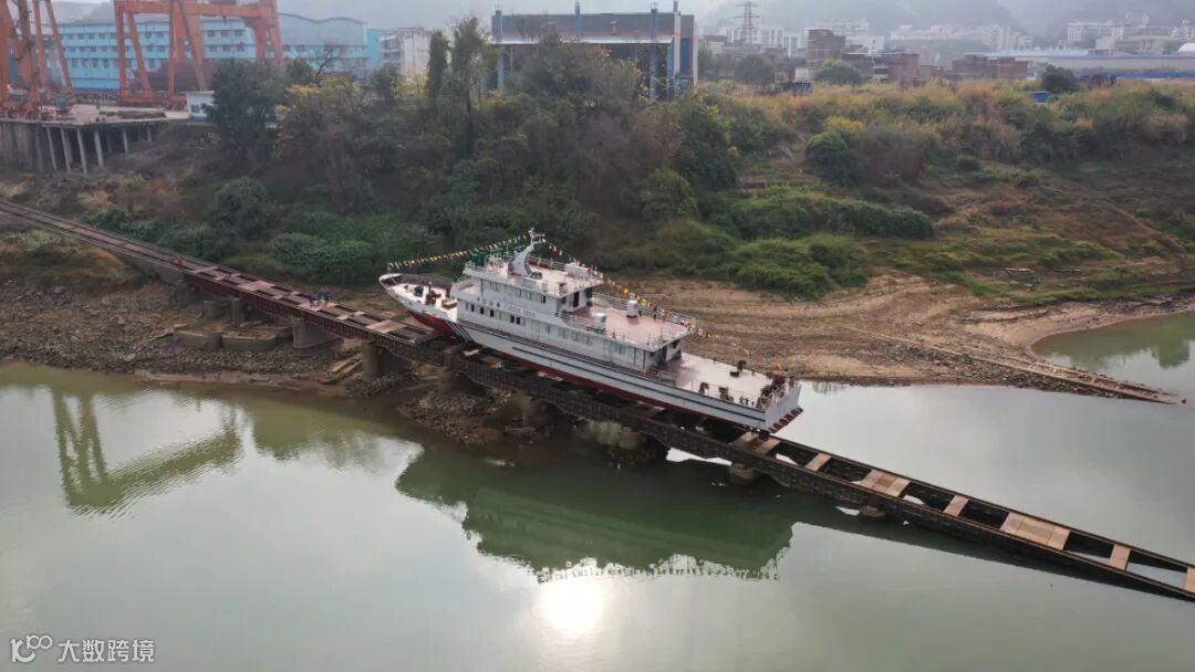 随着相关领导同时按下船舶下水键按钮,40米级巡逻船在下水滑道缓缓滑向江面。