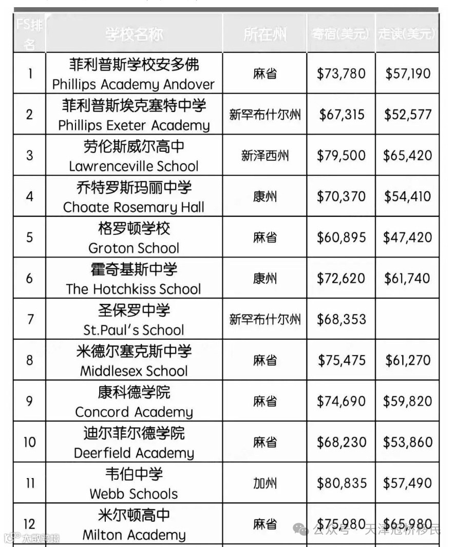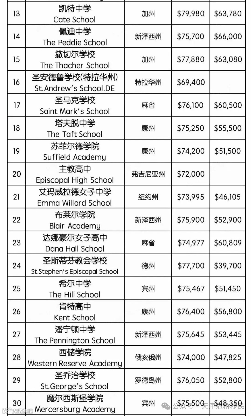 为大家整理了全美寄宿前50的学费和住宿费(费用公示来自官网,不包含杂费活动费等,最终费用以学校offer为准)供申请25年的家庭做选校参考。