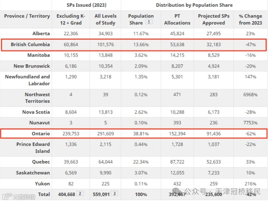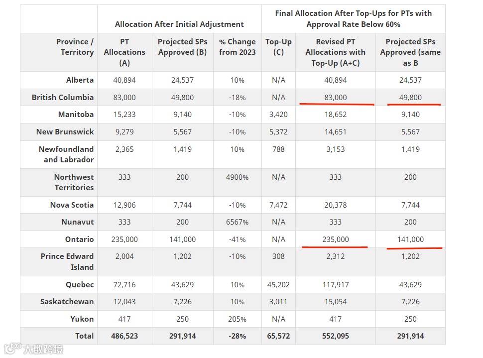 上图可以看到,2024年BC省可接受的申请数量是83000份留学学习许可,最终获批的数量预计是49800。安省可接受的申请数量是235000,但是最终只有141000可以获批。